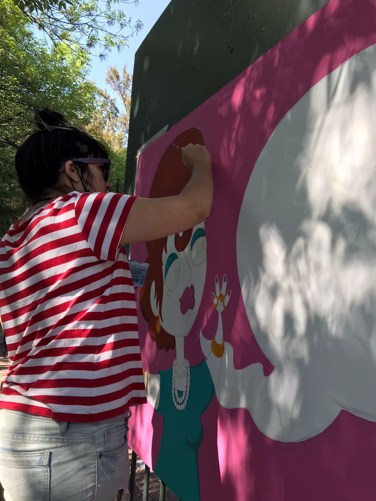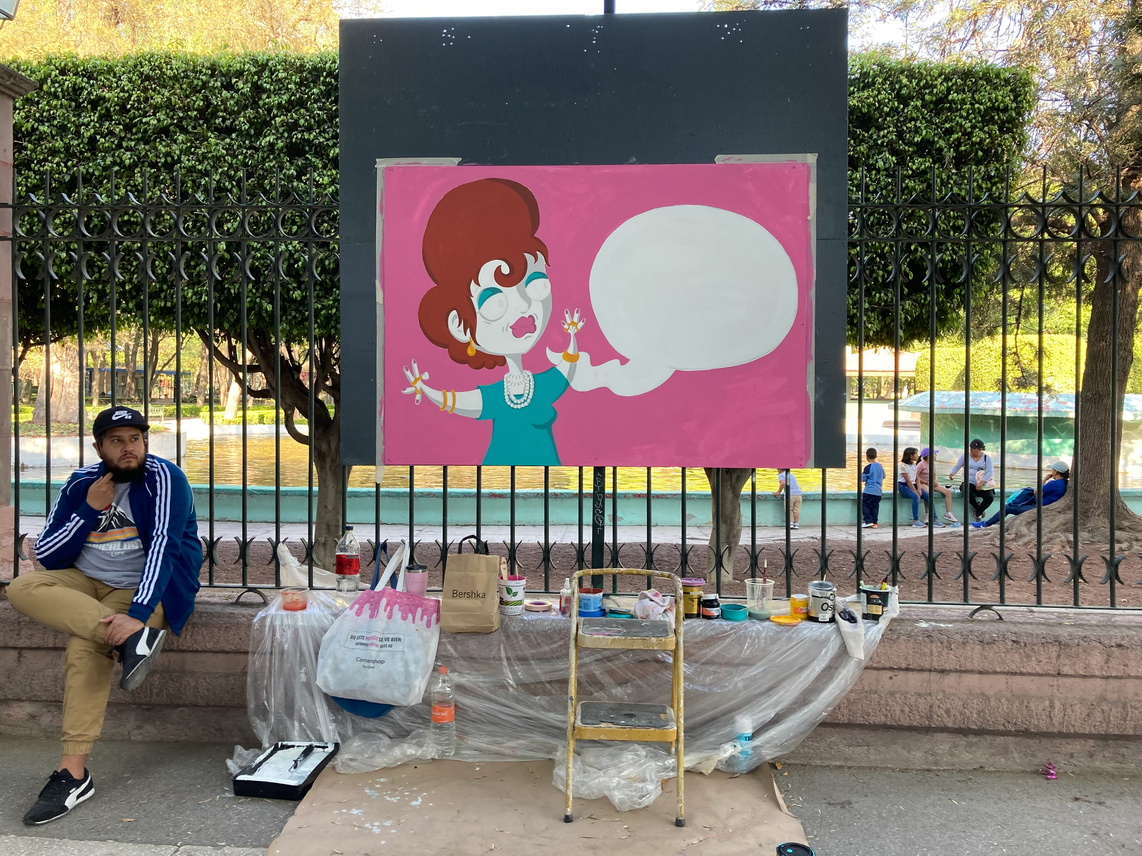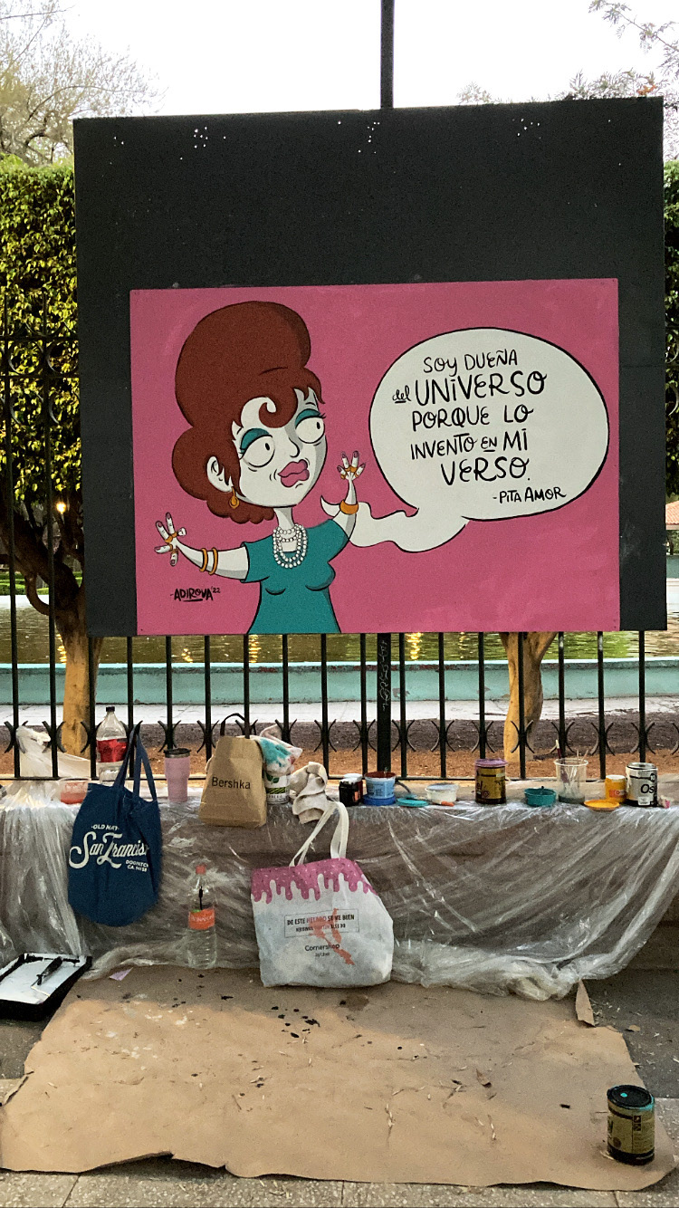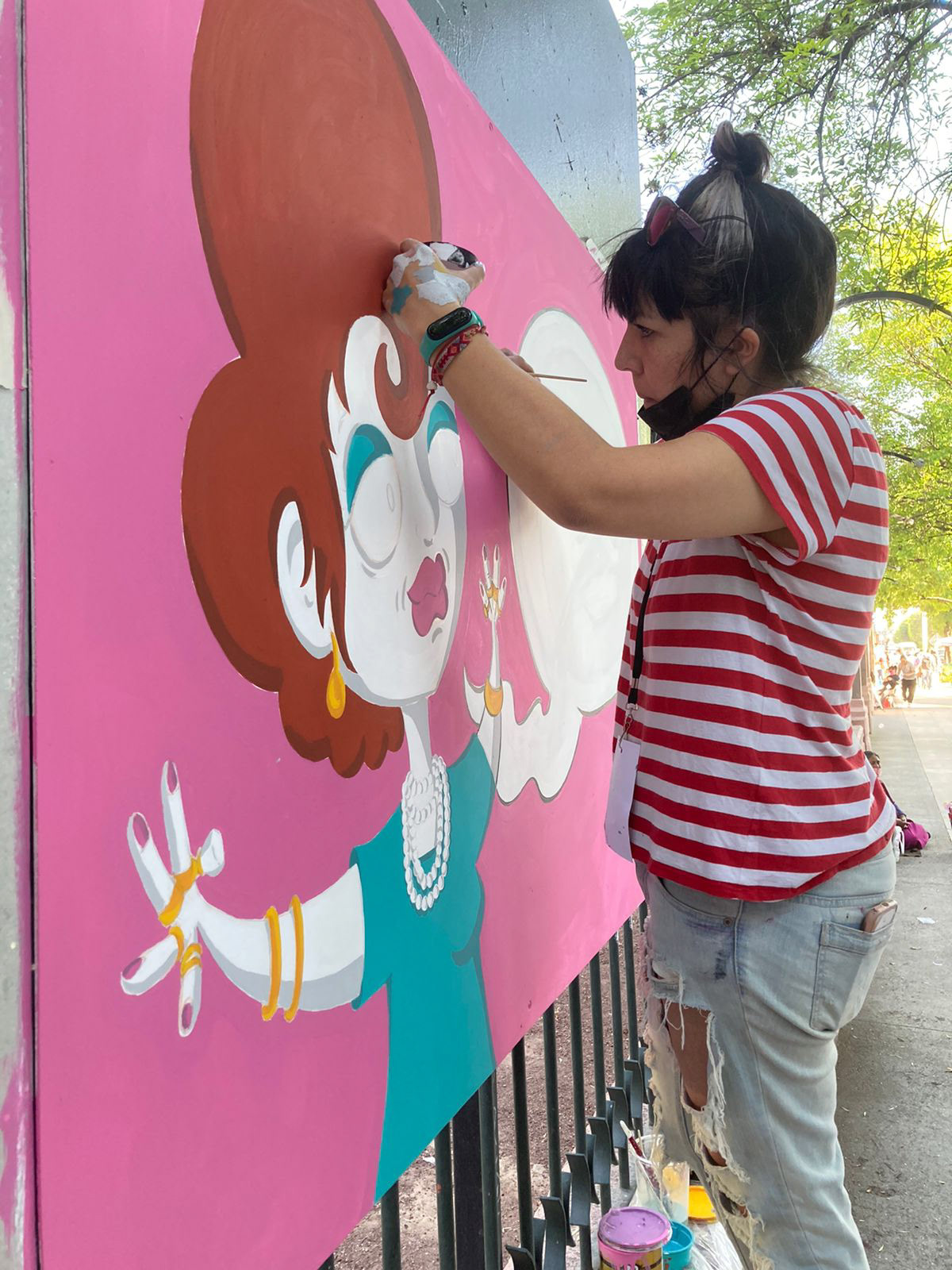 Street art to commemorate 100 great Mexican women, where 100 local artists painted in a public park for 3 days, to celebrate women's day.